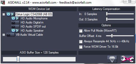 @bklindgren Yes, it is the buffer, so it will add latency. For an internal soundcard it might need to be quite large... 30 - 80msecs... so that the soundcard has time to process and probably resample to the internal sample rate of the computer..... for example 48K in Windows. When the computer does not have enough time to process the buffer before it is refilled then you will get audio dropouts (clicks).